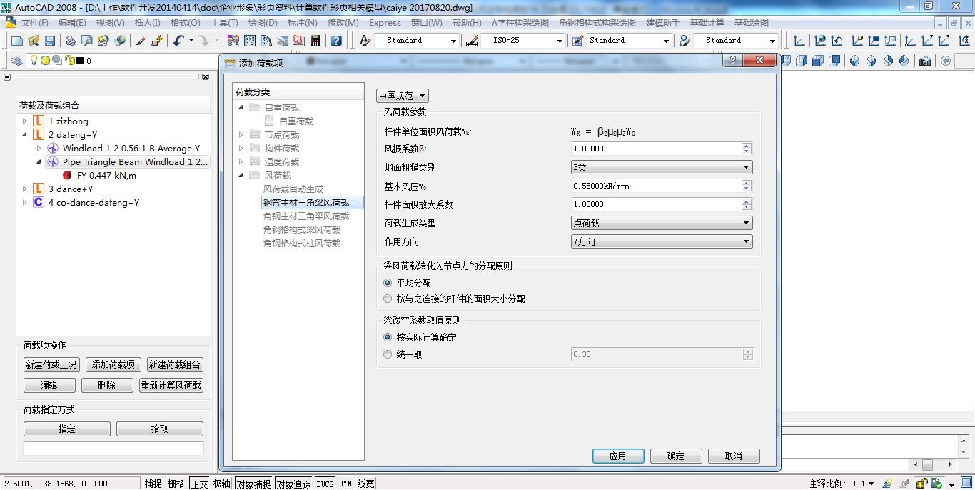 一款基于AutoCAD2007~2014平台开发的变电构架建模助手软件,建模助手通过构件梁、构件柱的参数输入的方式,可对变电构架进行快速的整体建模,同时,建模助手的荷载部分,能对构架的风荷载进行自动计算和加载,风荷载的计算按照《变电站建筑结构设计技术规程》(DL/T 5457-2012)进行,建模完成后,可将模型直接导出到midas GEN和staad软件中进行计算。
