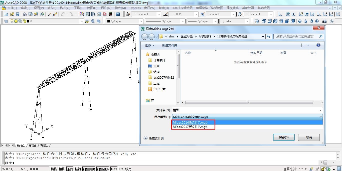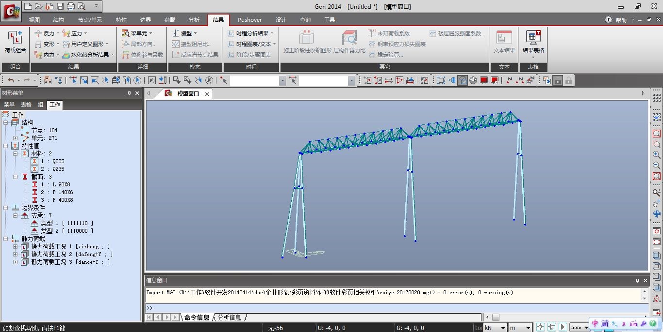 4、模型导入:将建模助手生成的mgt文件导入到midas GEN软件中,或将std文件导出到staad文件中。