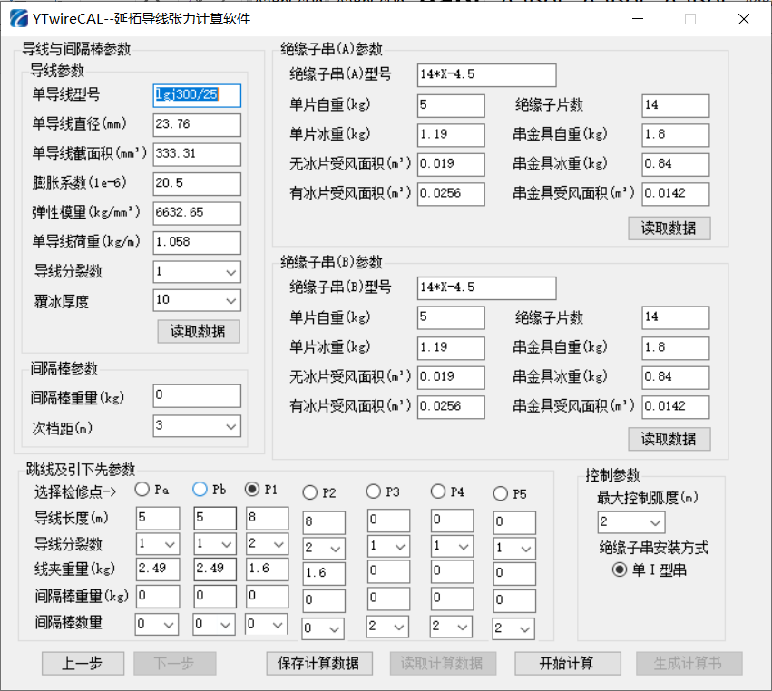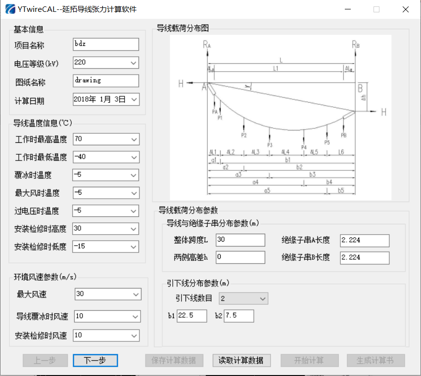 软件通过输入导线、环境的相关参数,自动计算变电构架导线在大风工况、覆冰工况、安装工况和检修工况下的导线张力,并自动生成导线张力的计算书。