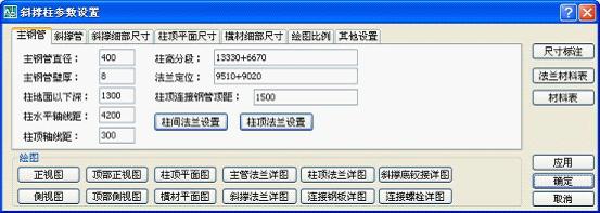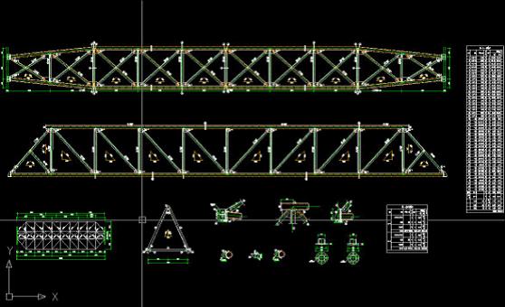 通过上述对话框中参数的设置,点击下面绘图框内的按钮,斜材柱的绘图工作即可完成,软件在绘图的同时,对所有构件进行编号,并绘制材料表。通过软件绘制的构架梁的图形如下: