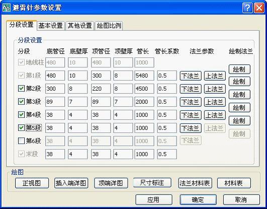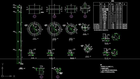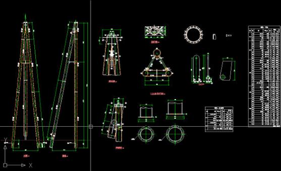 通过上述对话框中参数的设置,点击下面绘图框内的按钮,避雷针的绘图工作即可完成,软件在绘图的同时,对所有构件进行编号,并绘制材料表。通过软件绘制的构架梁的图形如下: