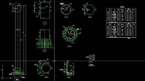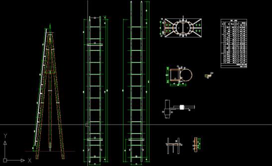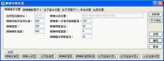 通过上述对话框中参数的设置,点击下面绘图框内的按钮,爬梯的绘图工作即可完成,软件在绘图的同时,对所有构件进行编号,并绘制材料表。通过软件绘制的构架梁的图形如下: